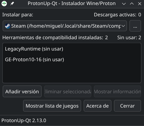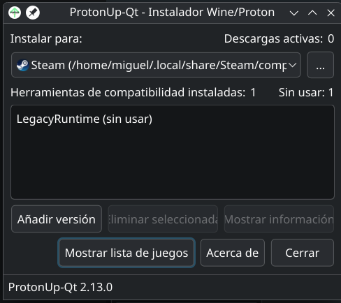 - Luego de que tengamos nuestra cuenta de Steam lista, abrimos el ProtonUp-Qt,