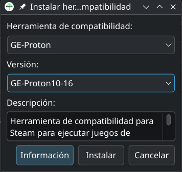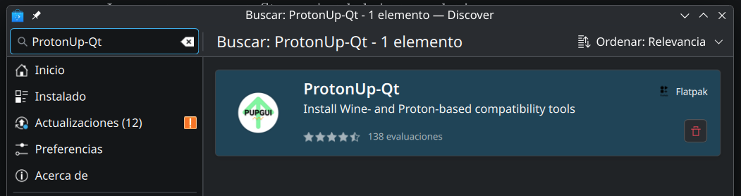 sudo zypper install steam lutris- Para mejor compatibilidad con juegos de Blizzard, es recomendable usar Wine-GE (Glorious Eggroll) y la versión de protón 9.4 siempre me compilaba y demoraba minutos con los preshaer, este se instala desde el Discover buscándolo como ProtonUp-Qt